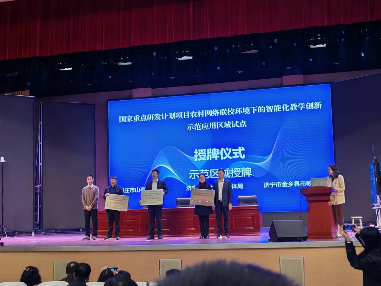 at the awarding ceremony, the general research group professor ke qingzhao, chen penghe, deputy director of the shandong province demonstration application representative area of zaozhuang city, jining county, jinxiang county, jining wenshang county signed a cooperation agreement and awarded the "demonstration area" plaque, for wenshang county first experimental primary school, wenshang county second experimental primary school, wenshang county third experimental primary school, wenshang county liu lou town middle school, jinxiang county second experimental middle school, jinxiang county yucai school elementary school, jining education institute affiliated primary school, jinxiang wang pi town central primary school, central primary school, jinxiang county middle school, jinxiang county rain middle school, jinxiang county third middle school, jinxiang experimental middle school, jinxiang county yucai school department, dongping county foshan primary school 16 demonstration application on behalf of the school gave "demonstration school" plaque.