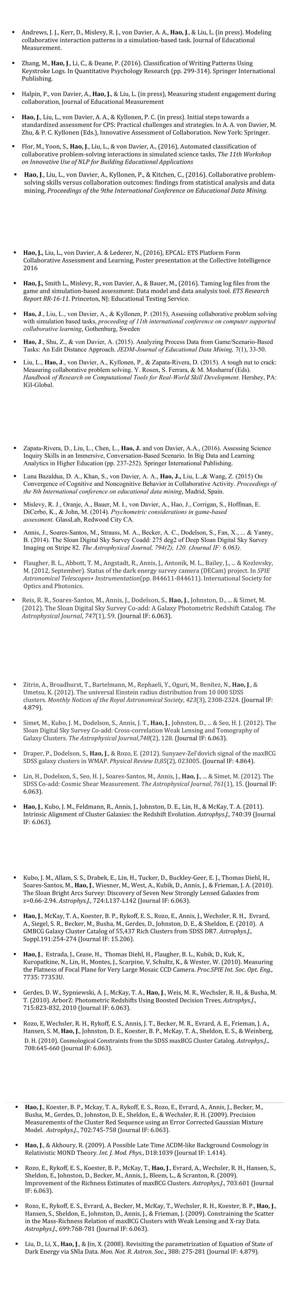 2)      peer-reviewed journal published by dr. jiangang hao in recent 10 years