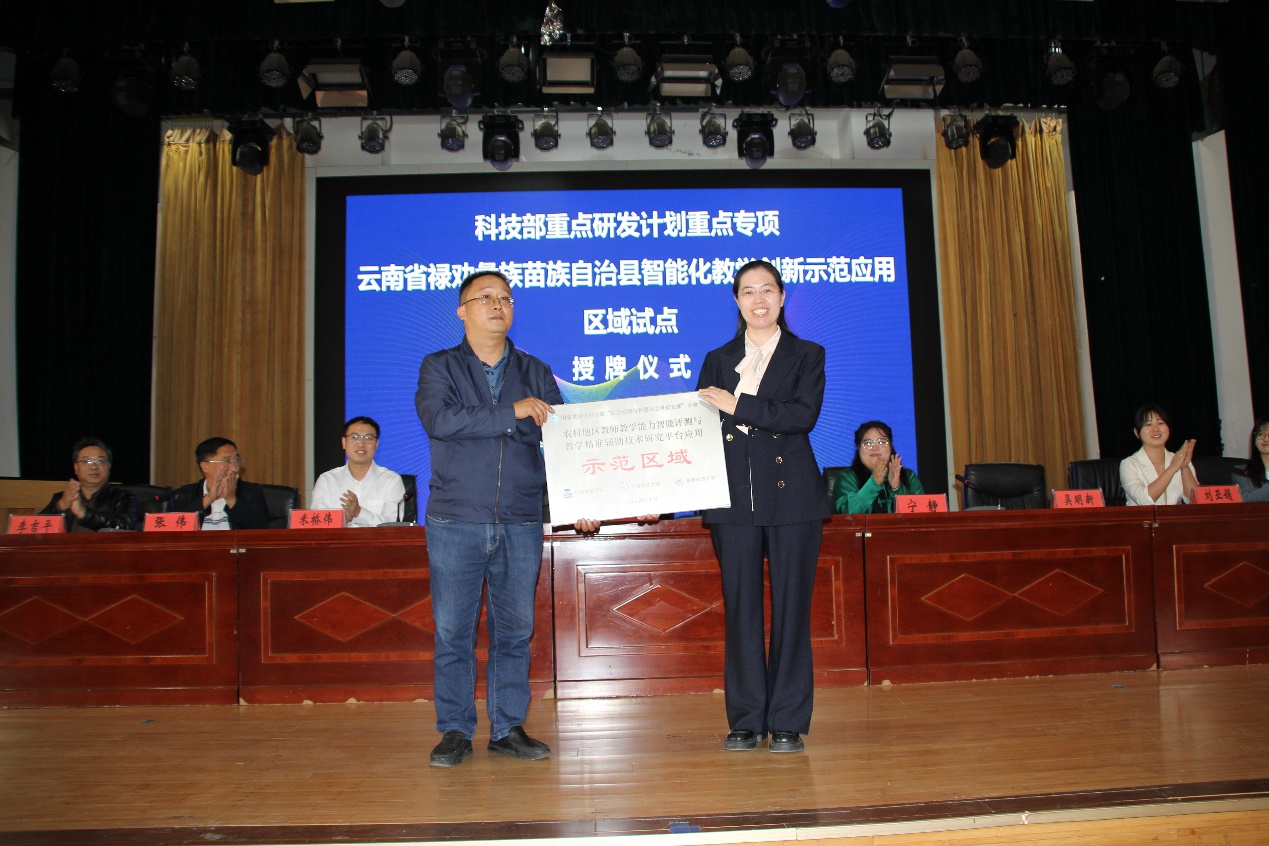 at the beginning of the awarding ceremony, li xiaoqing, the representative of the general project team, awarded the demonstration area plaque to luquan county, and wu mingxin, director of the education and sports bureau of luquan county, received the plaque.