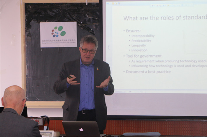 erlend øverby and tore hoel from iso/iec jtc1/sc36 was invited by beijing advanced innovation center for future education (aicfe) for one week academic exchange from november 20-26. in order to share cutting edge international standardizationworks to students at beijing normal university (bnu), aicfe especially organized two lectures that was delivered by erlend øverby and tore hoel. both lectures were broadcasting on harmony education platform developed by china mobile. dr øverby is chair of iso/iec jtc1/sc36. dr hoel represents norway at sc36 and he is also head advisor art oslo and akershus university college of applied sciences.