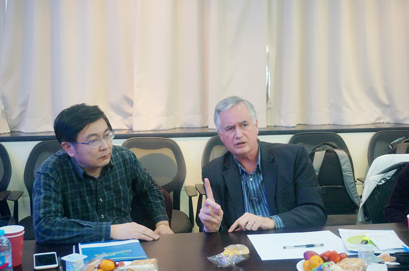 the visiting is separated in three sections. first, director tang warmly welcomed professor clarke. director tang introduced the background and organizational structure of aicfe. beijing, as the national political, cultural, and scientific and technological innovation center of china, is leading the development of education in the country. in 2015, beijing municipal commission of education launched the "advanced innovation center construction plan of higher education in beijing", aiming to build around 20 advanced innovation centers. the advanced innovation center plan is a long-term mechanism for the effective integration of the national and local, domestic and international colleges and universities and resources to utilize domestic and international innovative resources, to promote both research and application, to combine technological creation and talent development, to develop both national and local colleges and universities. aicfe is one of them.