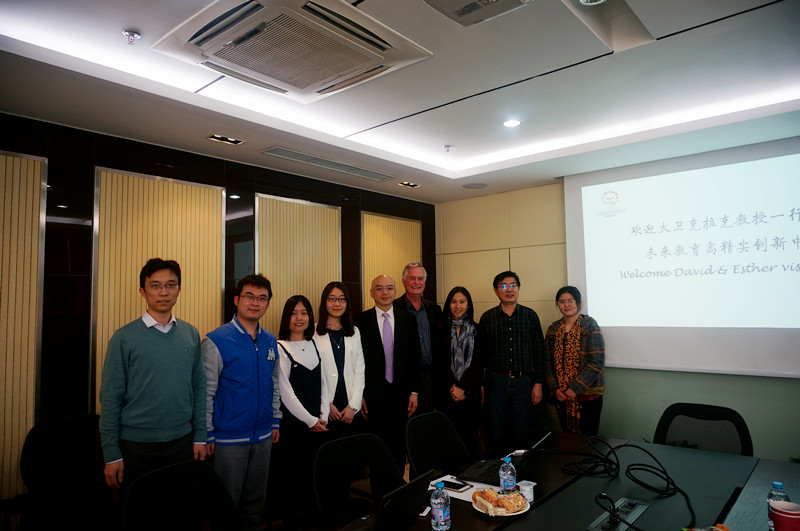 in the afternoon on march 31, 2017, professor david clarke from the melbourne graduate school of education at the university of melbourne with professor yiming cao from school of mathematical sciences at beijing normal university visited the advanced innovation center for future education (aicfe) . professor cao is the director of a research project titled development and application of diagnostic and analytics tools for mathematics discipline in middle schools, which is funded by aicfe. professor clarke is one of core members in this team, and he is the director of international centre for classroom research of the university of melbourne and an expert in mathematics education and classroom research. other attendees are associate professor xuefeng qiao from beijing normal university, assistant professor esther chan from the university of melbourne, director wei tang and si gao of international cooperation office, dr. lishan zhang of learning science laboratory, binbo sun and linghong du of subject-centered education laboratory.