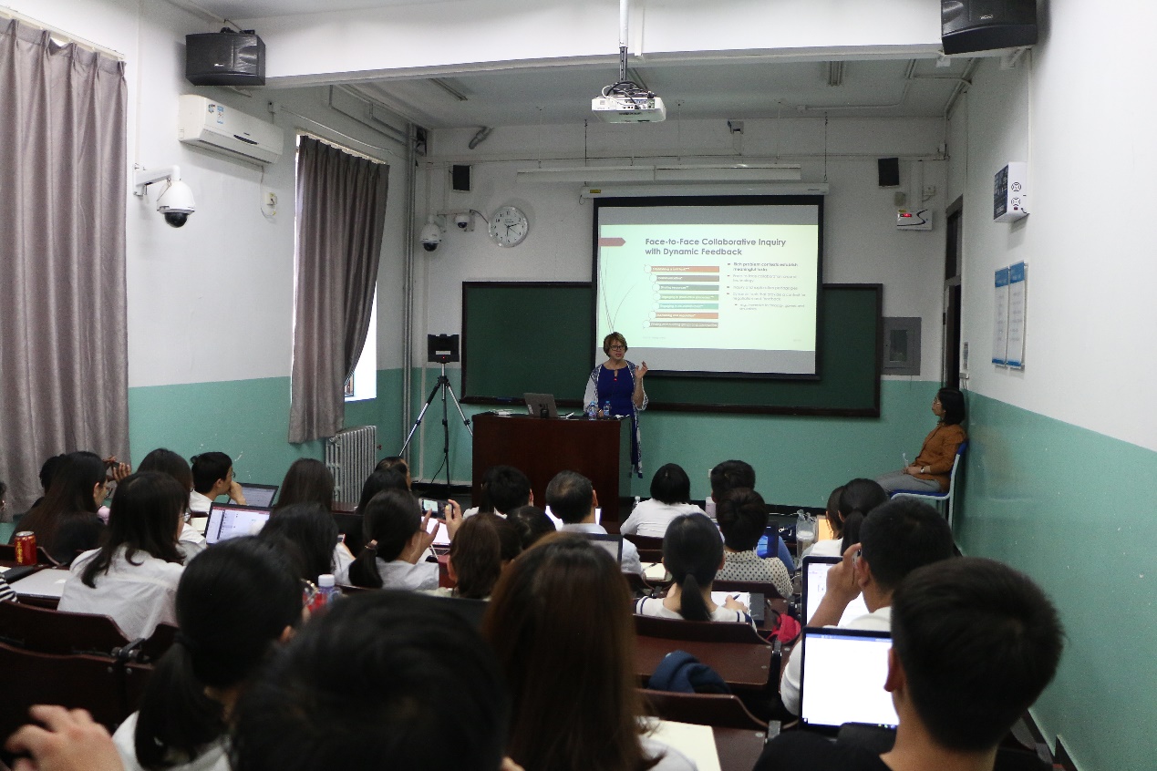 on the afternoon of may 21, professor cindy hmelo-silver gave a keynote speech on "cscl for all: technology support for inquiry learning" in the room 108, 10th teaching building. dr. maggie wang introduced professor cindy hmelo-silver. dr. cindy hmelo-silver is the barbara b. jacobs chair in education and technology, professor of learning sciences, and director of the center for research on learning and technology at indiana university. she studies how people learn through problem-based inquiry and how technology can provide support for problem-based and inquiry learning.