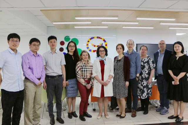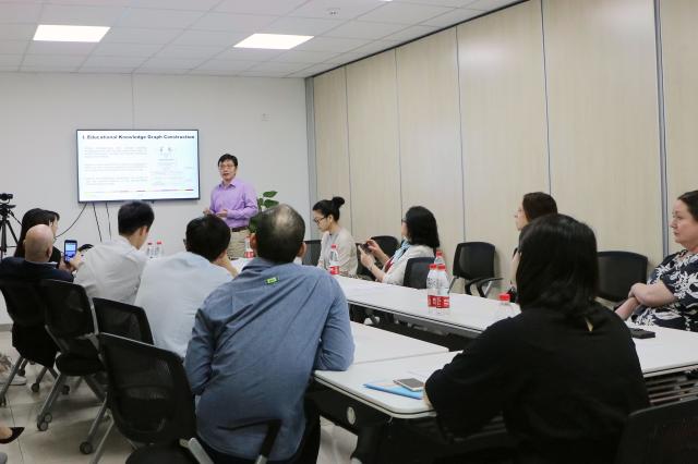 on 28th, ten participants visited the advanced innovation center for future education (aicfe). associate professor yu lu, director of the ai lab, introduced research and international cooperation, and have jiachen song and xuan gu demonstrated the smart learning partner and the online and offline teaching services. the senior research fellow for the ibe, professor eric hamilton from pepperdine university and representative from national centre for schooling development programme were deeply impressed by the online and offline teaching services and ai-driven educational robots and believed that they have broad application prospects.