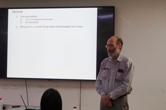on 27th, the two lectures are warmly welcomed by all listeners. prof. winters and prof. nussbaum give two talks respectivley, my experience as co-editor of computers & education and my experience as co-editor of the british journal of educational technology (bjet) and what we expect from authors. in their speeches, they mentioned why the writers fail, the strategy to organize a paper, the key issues of a paper. in prof. winters's talk, he discusses what makes a good paper, what types of papers we are looking to publish and who are main audience. ample time are given over to a q&a session where a large number of authors talk about research in progress that they want to submit to bjet.