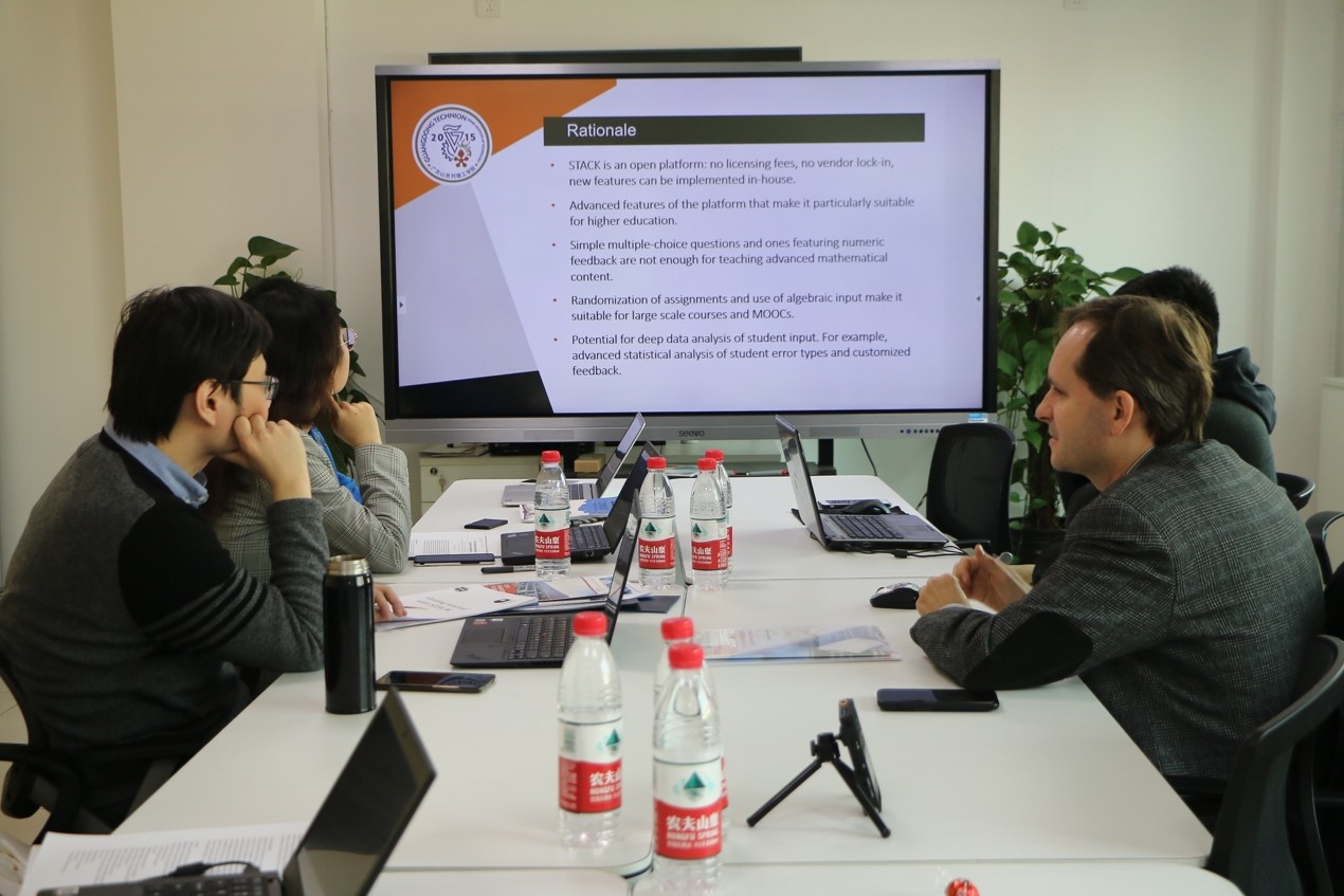prof. rasila gave a detailed description of main functions of stack (the system for teaching and assessment using a computer algebra kernel), an online assessment package for mathematics, and then gave examples on abacus. abacus is a material bank for stem education based at aalto university, finland. prof. lu discussed how to generate mathematics dynamic short answer questions and related technical problems with him.
