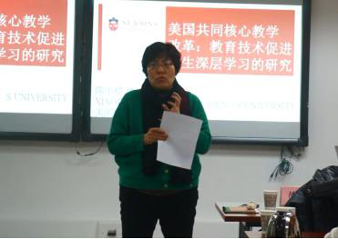dr. chen firstly introduced the basic situation of the common core education reform of the united states, and then deeply analyzed the expectations held by the us education reform putting forward ability aims for students of different stages. she also analyzed the actual operation situation of technological integration by teachers and discovered that the problems during the process of technological integration are similar to those emerged from the information technology and curriculum integration by chinese teachers. at last, dr. chen shared the new opportunities, challenges and issues needed to be discussed regarding technological integration under the circumstance of a common core.
