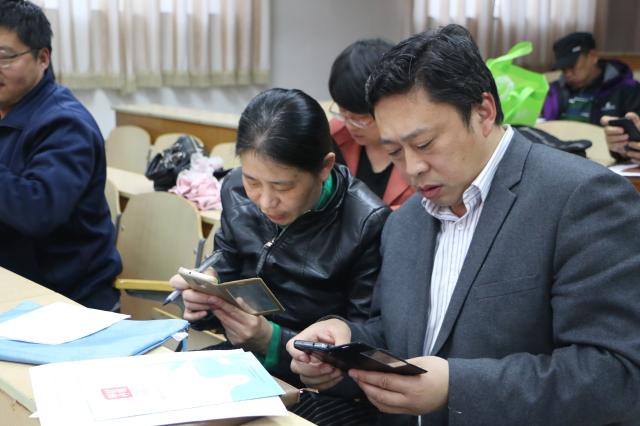 中心融合应用办公室解晓乐、刘欢演示双师服务需要的工具及操作流程,参会校长们都认真聆听并尝试操作。