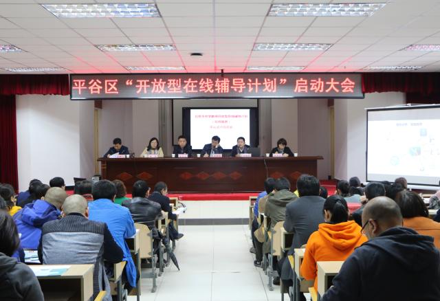 为进一步深化教育领域综合改革,深入贯彻落实《北京市中学教师开放型在线辅导计划(2018-2020)(试行)》(以下简称“双师服务”),以“互联网 ”和大数据深化创新教育基本公共服务方式,保证平谷区各校领导及师生能够深入了解双师服务,平谷区教育研修中心联合未来教育高精尖创新中心,于4月13日下午举行了平谷区“北京市中学教师开放型在线辅导计划”启动大会。平谷区教工委工会主席龚顺国、平谷区教育研修中心书记李怀庆、平谷区教委人事科副科长张秀芳、平谷区教育研修中心学历与信息部主任郭春有、未来教育高精尖创新中心执行主任余胜泉,融合应用实验室主任陈玲、学科教育实验室常务副主任李晓庆,全区各初中校校长、教学副校长共100余人参加了会议。