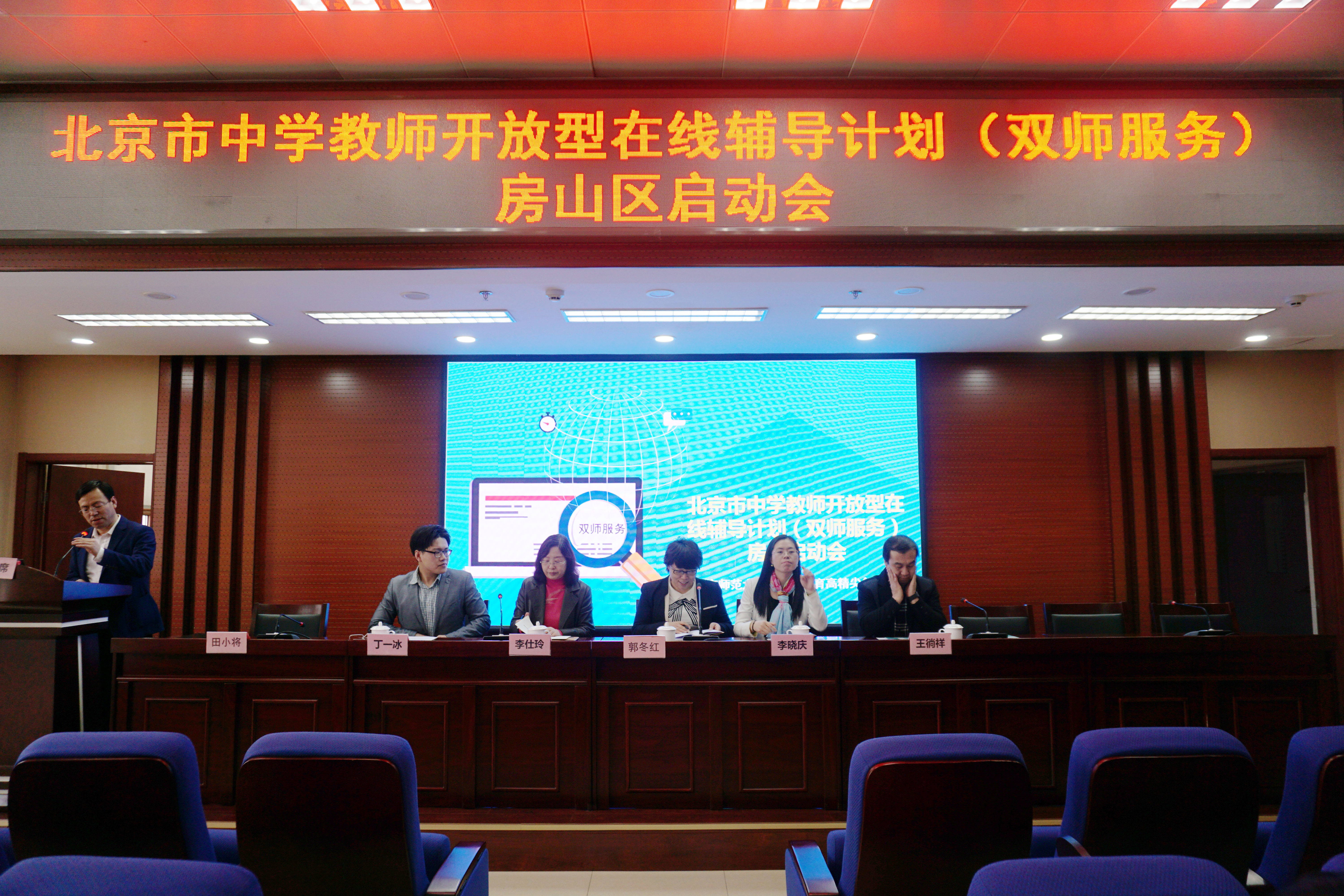 为进一步深化教育领域综合改革,助力本市学科教学改革和考试招生制度改革,市教委市财政局联合制定了《北京市中学教师开放型在线辅导计划(2018-2020年)(试行)》(京教人〔2018〕1号),并于3月30日在市教委举行2018年工作启动会。会议上决定将中学教师开放型在线辅导计划(以下简称双师服务)在北京市房山、通州、延庆、密云、怀柔和平谷六个区县进行全面推广。为保证房山区各校领导及师生能够深入了解双师服务计划,认真学习领会北京市教委的启动会会议精神,房山区教委联合教师进修学校,于4月3日举行了工作启动会,房山区教委和教师进修学校的领导、各学校领导以及未来教育高精尖创新中心双师项目负责人共同参会。