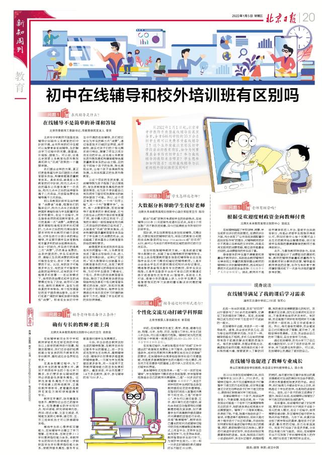 [北京日报]初中在线辅导和校外培训班有区别吗