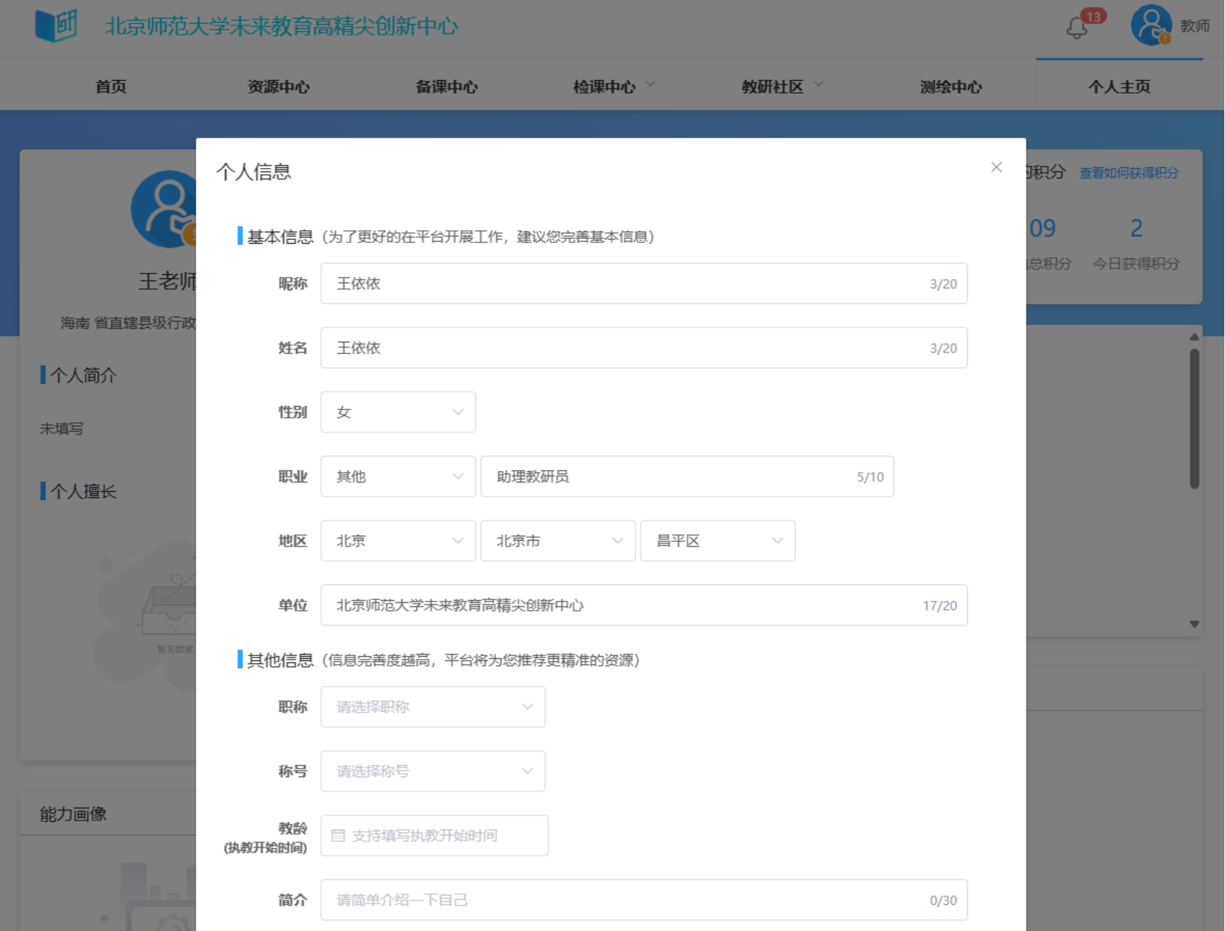 (3)完善个人信息:访问“个人安信十娱乐平台主页”,根据个人实际情况如实且完整填写个人信息,此信息将与作品获取信息关联。