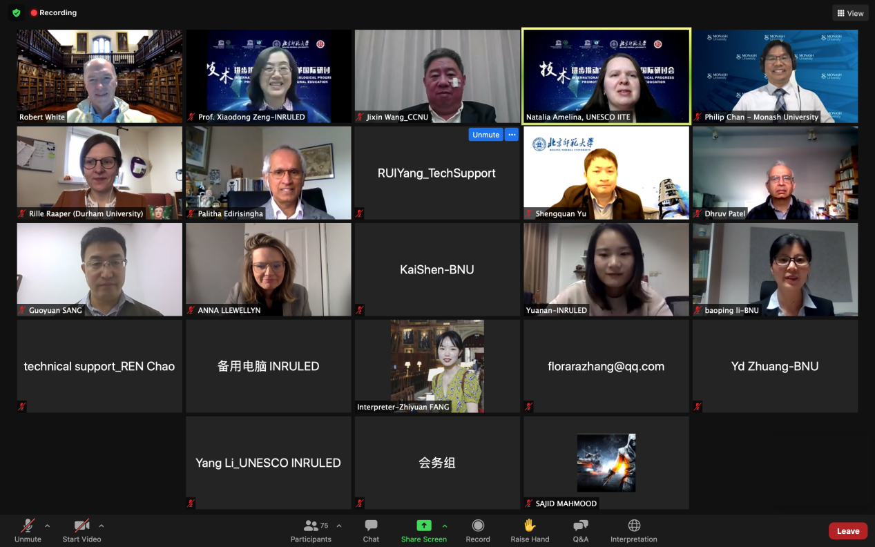新冠疫情形势下,在线教育的广泛应用对农村教育生态带来重大重塑与改革。在这一大背景下,2021年1月16日-17日,联合国教科文组织国际农村教育研究与培训中心(以下简称“农教中心”)、联合国教科文组织教育信息技术研究所、北京师范大学教育学部共同举办“技术进步推动农村教育改革”国际研讨会,召集国际相关专家就如何结合教育技术进步提升农村地区教育质量,更好应对新冠疫情对农村教育带来的挑战,构建包容与可持续发展的社会进行了探讨。期间,北京师范大学未来教育高精尖创新中心执行主任余胜泉教授、学习科学实验室主任李葆萍副教授出席论坛。
