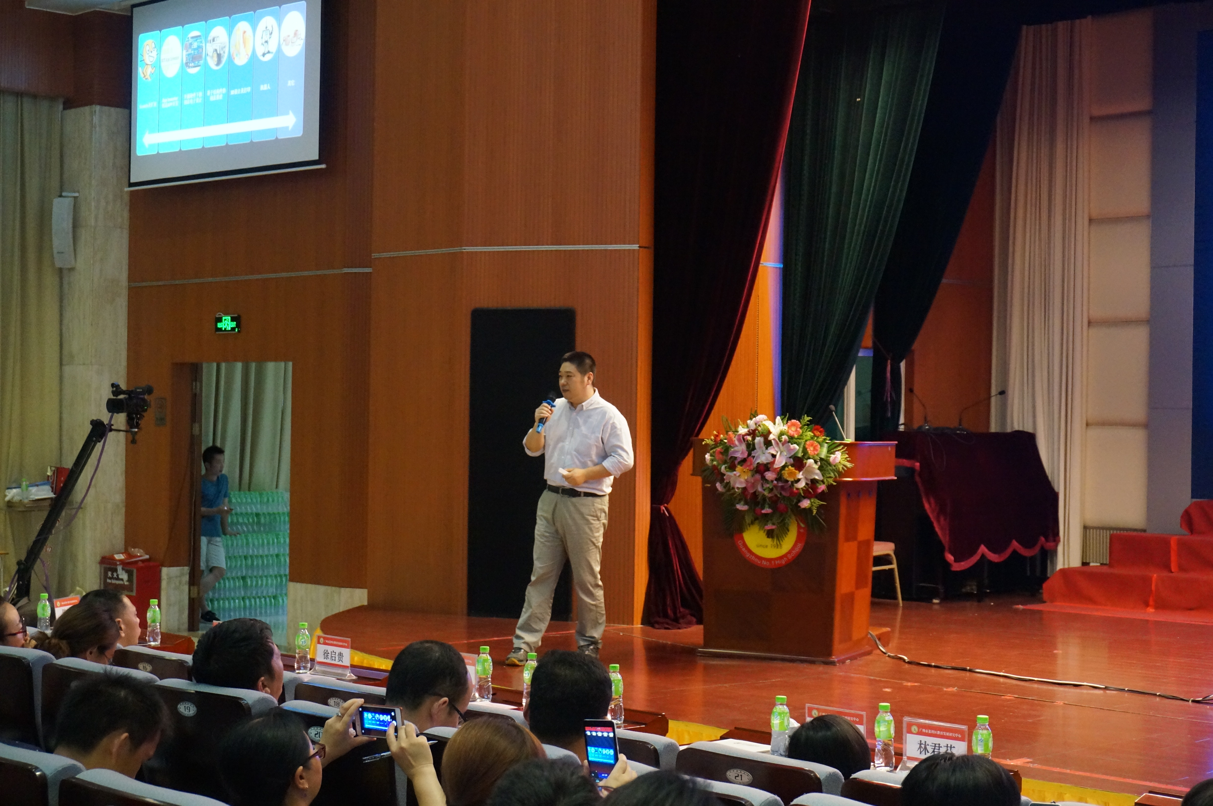 广州市荔湾区莫伟琼副区长、广州市荔湾区教育局徐启贵局长、北京师范大学现代教育技术研究所何克抗教授、北京师范大学未来教育高精尖创新中心融合应用实验室主任陈玲博士、北京师范大学教育技术学院傅骞副教授、广东省电化教育馆林君芬博士以及区政府办、区教育局、区科工信局、区教育发展研究中心的有关领导出席会议。会议由五部分组成:开幕式、主题演讲、现场课分享、专题研讨交流、闭幕式。