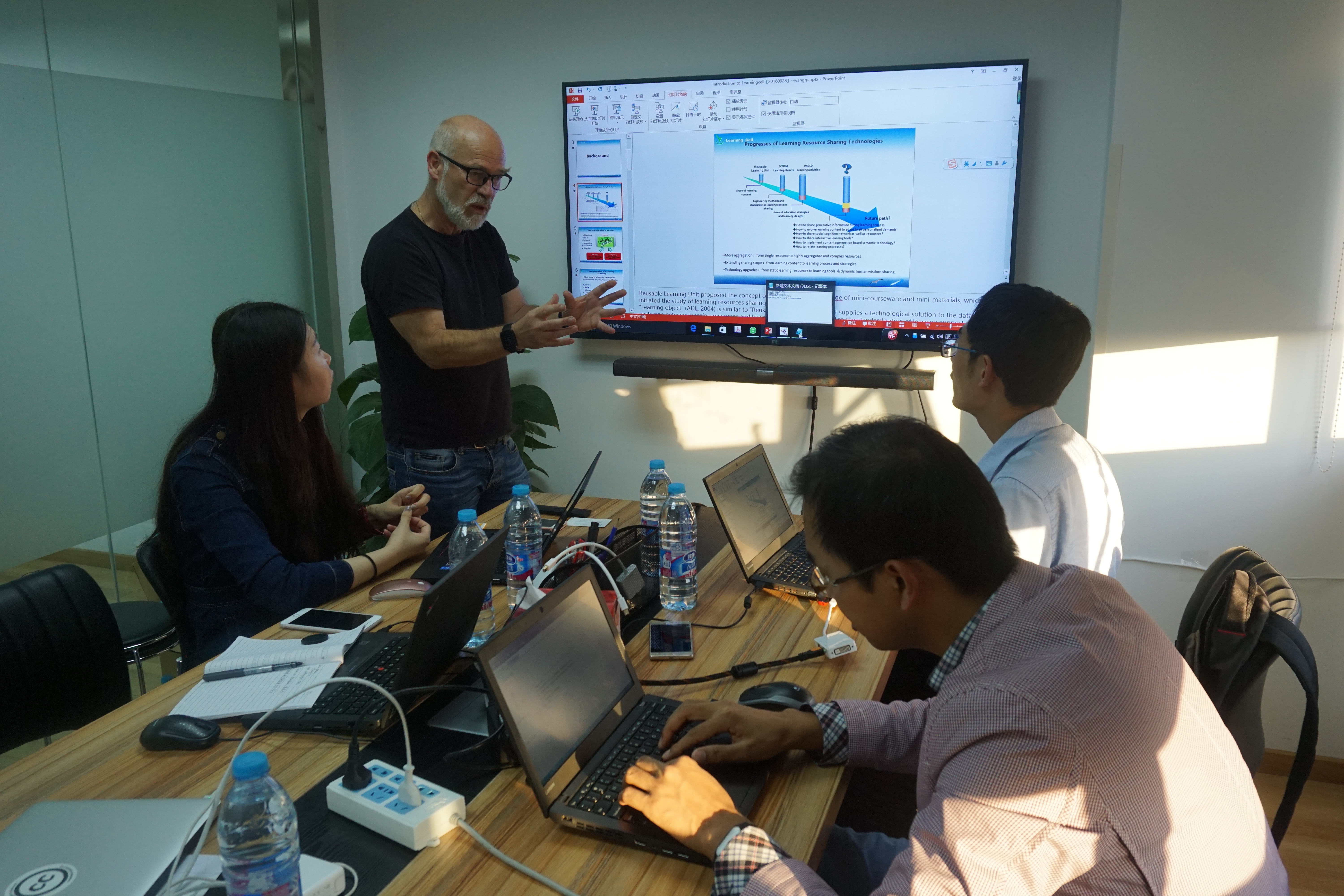 在国际标准的准备工作中,除了邀请国际专家莅临指导外,中心还每月组织研究工作会议。9月26日,第三次国际标准研究工作会议于演播楼208顺利召开。参加会议的有未来教育高精尖创新中心的汤伟总监、马瑄蔚老师、宋佳宸老师、郭佳丽老师,北京邮电大学的李青老师,北京师范大学的王志春老师、王琦博士、徐刘杰博士、杨丹硕士等。在会议中,李青老师、杨丹硕士、王琦博士先后汇报了工作进展,随后大家积极讨论了工作中的问题和下一步工作的安排。
