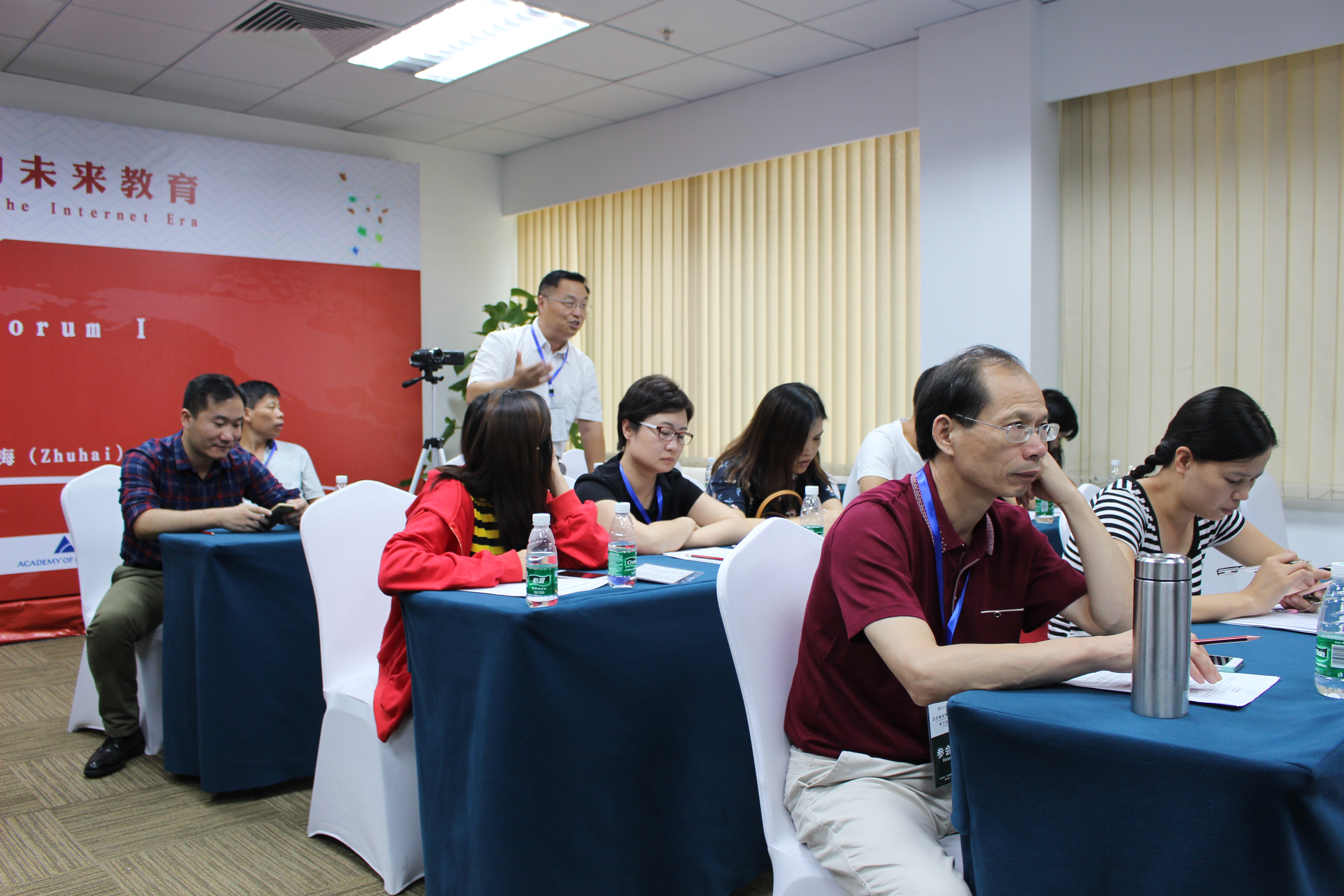 图1:北京师范大学珠海分校教育学院院长王建成教授被“互联网时代的未来教育”分论坛的内容吸引,来参加分论坛并对《数字故事和数码笔在教育和学习中的应用》的发言提问