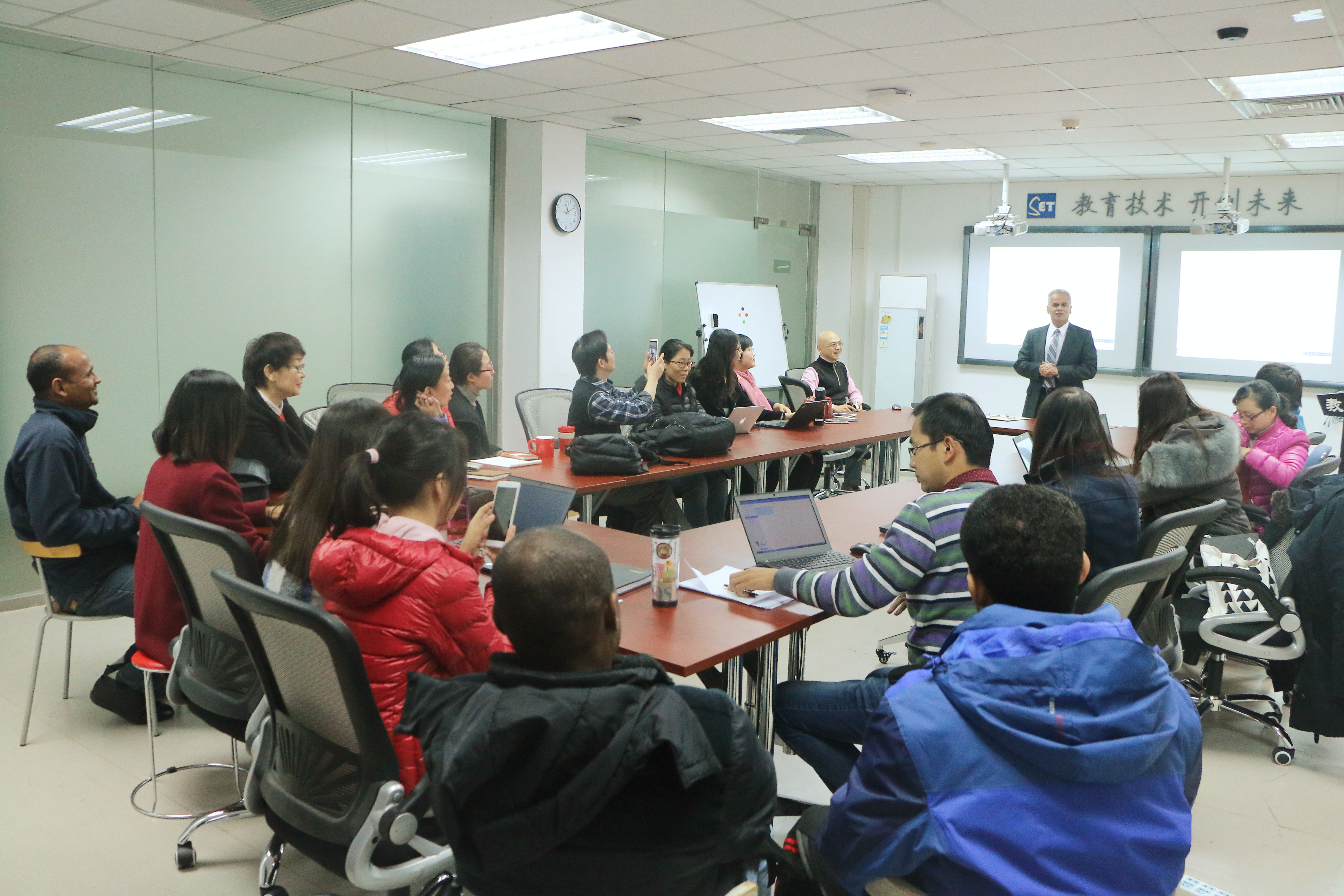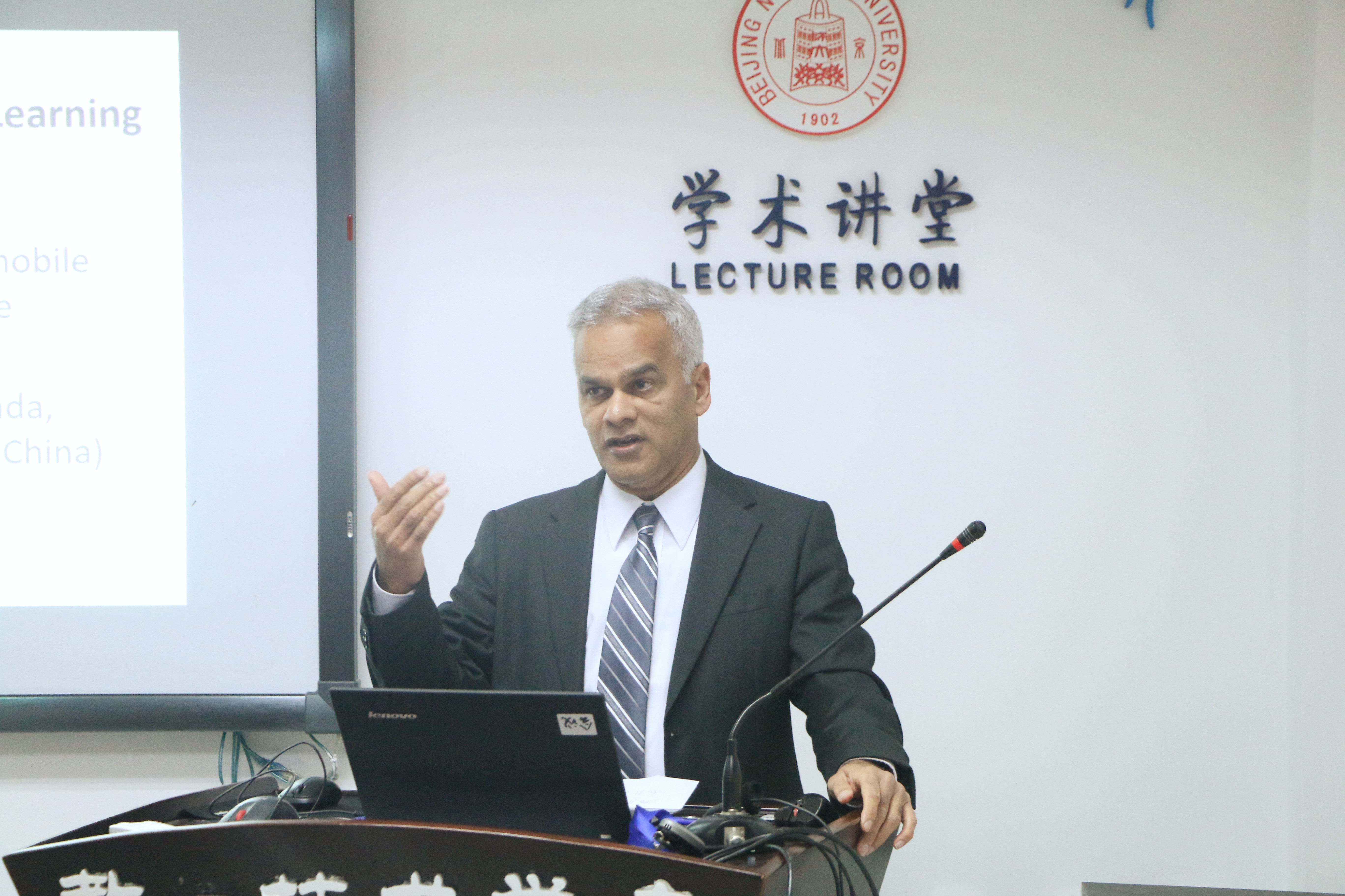 2016年11月10日下午,mohamed ally(默罕默德·艾利)教授为北京师范大学师生们带了一场名为“新兴技术与创新教学法对未来教育的影响”的专家讲座。该讲座由北京师范大学未来教育高精尖创新中心主办,未来教育高精尖创新中心国际合作办公室汤伟总监主持,共吸引了约30位听众,包括未来教育高精尖创新中心的工作人员,北京师范大学的教授,北京师范大学的学生和留学生等。首先,汤伟总监对艾利教授进行了介绍。艾利教授是加拿大阿萨巴斯卡大学远程教育中心教授,他同时是北京师范大学未来教育高精尖创新中心专家顾问委员会的委员。他目前的研究集中于远程教育、移动学习、在线学习、信息和通信技术的培训和教育等领域。