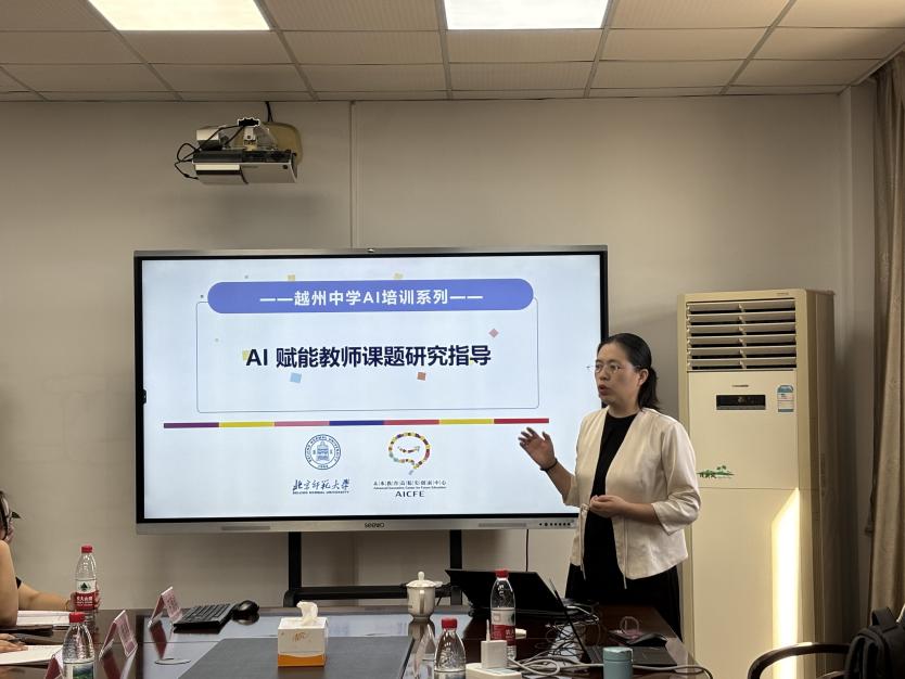 为推进人工智能与教育教学深度融合,助力越州中学教师提升 ai 素养、适配教育数字化转型需求,9 月 25 日至 26 日,北京师范大学未来教育高精尖创新中心(以下简称 “中心”)与越州中学联合开展主题为“ai赋能教学与课题研究新模式”的首次现场指导。越州中学校长余文浩、党支部书记宣方军、教学发展办公室主任张微娜,学校教师代表,中博教育基金会理事长苏立,中心学科教育实验室主任李晓庆、教研员张妍及学科专家付绘、刘会芹共同参与活动。