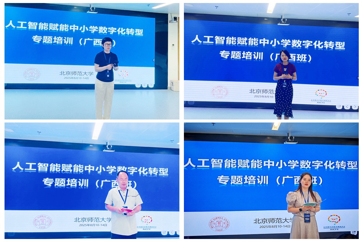 当前,以人工智能为代表的新一代信息技术正深刻重塑教育形态,数字化已成为教育现代化发展的核心驱动力。为深入贯彻落实习近平总书记关于教育的重要论述和《教育强国建设规划纲要(2024-2035年)》文件精神,积极响应“推动人工智能与教育深度融合,加快教育数字化转型升级”“积极稳妥推进人工智能赋能教育变革”等战略部署,全面推进智能技术与教育教学的创新应用,助力构建高质量教育体系,2025年8月10日至14日,北京师范大学未来教育高精尖创新中心联合广西教育技术学学会,于北京举办人工智能赋能中小学数字化转型的专题培训(广西班),进一步探索人工智能赋能教育数字化转型的实践路径,为新时期教育高质量发展提供新思路与新方案。