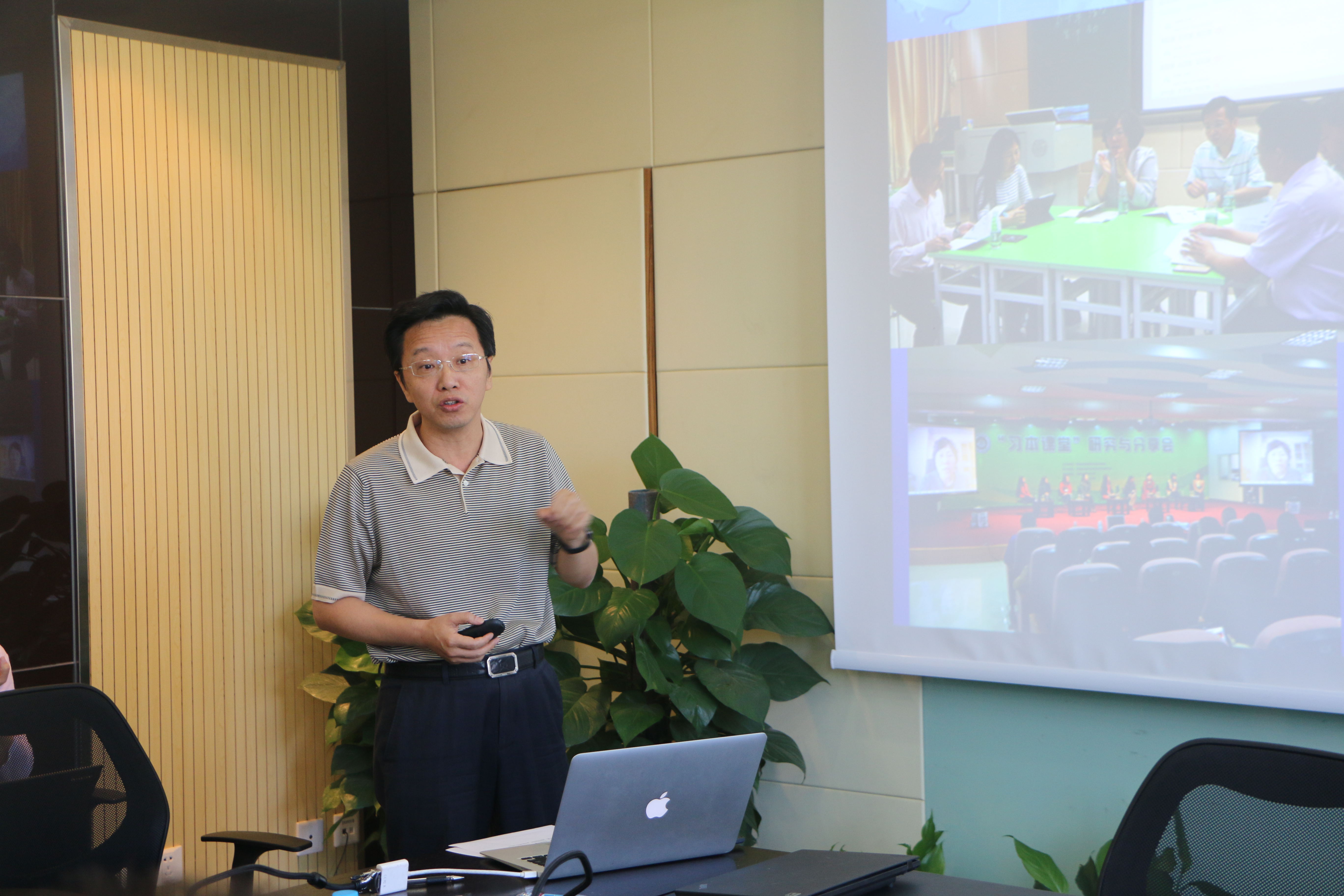 中国教育发展战略学会会长郝克明先生首先介绍了专家委员会委员,表明此次专家来访是为推进信息技术与教育变革实践、信息技术和教育体制结合,改革教育理念、模式内容和方法。作为教育发展宏观战略研究的引领者郝克明先生对北京师范大学为北京教育深综改做出的努力给予赞扬,高度肯定北京师范大学就互联网时代结合信息技术与教育改革所做出一系列成绩。同时对未来教育高精尖创新中心的发展方向抱有期望。
