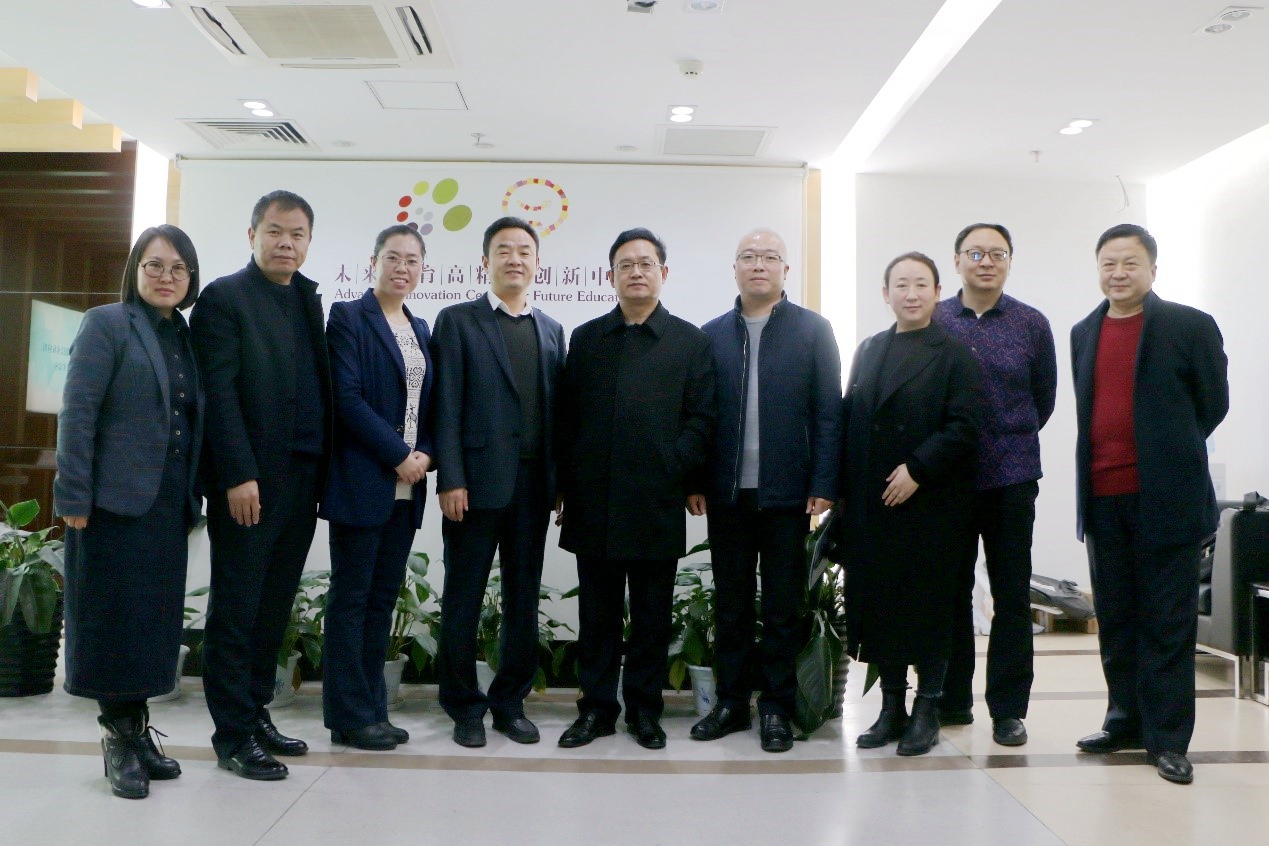 为进一步了解高精尖中心的未来教育理念和前沿研究,2018年12月4日,唐山市迁西县教育局局长陈立清、副局长张志永带领10余位校长及领导参观高精尖中心,北京师范大学教育技术学院副院长吴娟副教授、未来教育高精尖创新中心学科教育实验室常务主任李晓庆老师、行政办公室主任李晓琴老师等热情接待并进行了深入讨论,李晓琴主任主持会议。