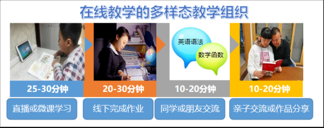 实施形态包括基于班级(年级)群体的在线教学服务、共享资源服务和指导学校进行在线教学整体规划服务。