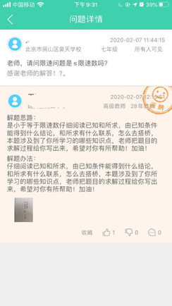 开放型在线答疑,是积极响应教育部“停课不停学”的决策部署的有力举措,是市教委为学习需求最迫切的初三、高三年级提供的个性化定制服务,使得学生延期开学、居家自主学习期间,可以针对学科个性化难题,请网络教师为自己“把诊问脉”、答疑解惑。通过开放答疑,使得全市优质教师打破了学校和区域边界,借助网络实现了基于学生学习需求的流转和配置,使得即使身处远郊区县的孩子也能够平等、随时随地得到全市名师的指导和反馈,这是基于网络教育供给侧的又一次尝试和革新,也是疫情期间坚持落实北京市“七有五性” 、学有所教的体现,急学生所急、供人民所需,真正提升了家长和学生的教育获得感。未来教育高精尖创新中心后续将全力贯彻北京市教委的工作要求,与北京市全体师生同舟共济,共克时艰,做好相关支持和服务,为疫情特殊时期的教育公共服务继续添砖加瓦、贡献力量。