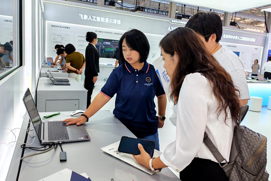 9月10日至14日,由商务部和北京市人民政府共同主办的2025年中国国际服务贸易交易会(2025 china international fair for trade in services ,ciftis)在北京举行。本届服贸会教育服务专题展以“智启未来,融合创新”为主题,成为国务院印发《关于深入实施“人工智能 ”行动的意见》等政策落地的重要展示窗口。其中,北京师范大学未来教育高精尖创新中心以人工智能通识教育安信11娱乐平台的解决方案与智慧教研系统亮相北京市人工智能通识教育展区。北京师范大学未来教育高精尖创新中心人工智能实验室主任卢宇、融合应用实验室副主任郭晓珊、人工智能实验室李希铭、合作发展办公室许婷婷、行政办公室冀林林进行项目讲解与展示。