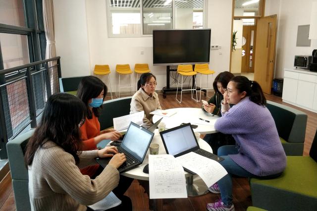 随着子课题开放申请,为帮助教师更好地理解课题的宗旨,提炼教育教学中实际关键问题,梳理课题研究思路,强化在实际教育教学中的数据意识,2020年11月11日,北师大高精尖中心学习科学实验室崔京菁博士、吴斓博士和刘阳老师深入通州区学校学科教研组,与开展申报子课题研究的学科教师进行了课题研究方面的探讨和交流。